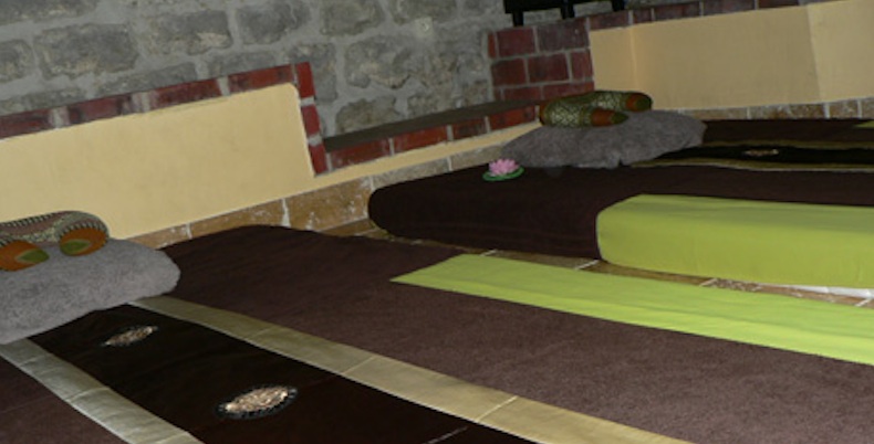 C’est dans un décor unique que vous serez accueilli chez Sympathie Krisana. Des murs de pierres apparentes, des lattes et des matelas à même le sol, un plancher en carrelage. À première vue, cela peut sembler un peu froid, mais dès que vous serez sous les mains expertes des professionnels, l’atmosphère sera immédiatement plus chaleureuse et feutrée. Dans le respect de la tradition thaïlandaise, vous pourrez profiter de soins de qualité dans une ambiance sereine pour un bon moment de relaxation.